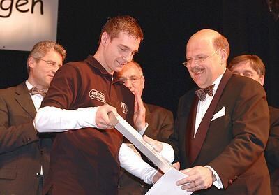 Valdo Lehari jun. überrascht Sprinter Tobias Finkbeiner (links) mit dem GEA-Junior-Preis.