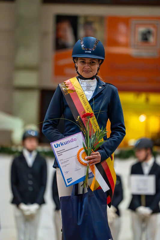 Die Trochtelfingerin Laura Bräuninger mit der Siegerschärpe im Springen bei der deutschen Hochschulmeisterschaft.