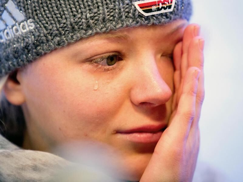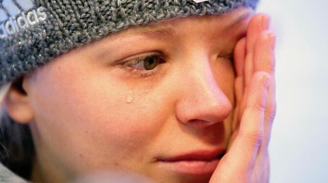 Miriam Gössner wischt sich ihre Tränen aus dem Gesicht. Foto: Kay Nietfeld
