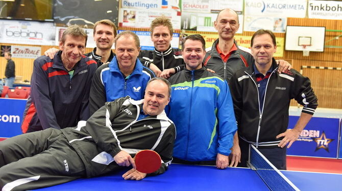 Ein Klassefeld beim Turnier der Legenden. Stehend von links: Engelbert Hüging, Werner Schlager, Milan Orlowski, Jörgen Persson, Steffen »Speedy« Fetzner, Lech Kucharski, Mikael Appelgren. Vorne: Dietmar Palmi.