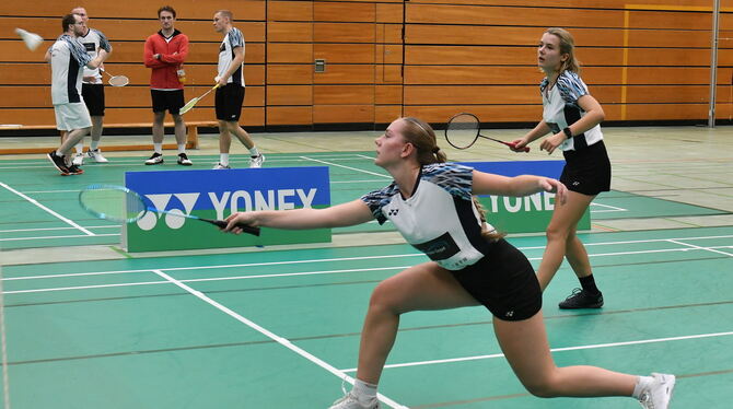 Amera Dubinovic (vorne) – hier mit Anne Ladwig – rettet mit Daniel Göricke Mössingen einen Punkt. FOTO: MEYER