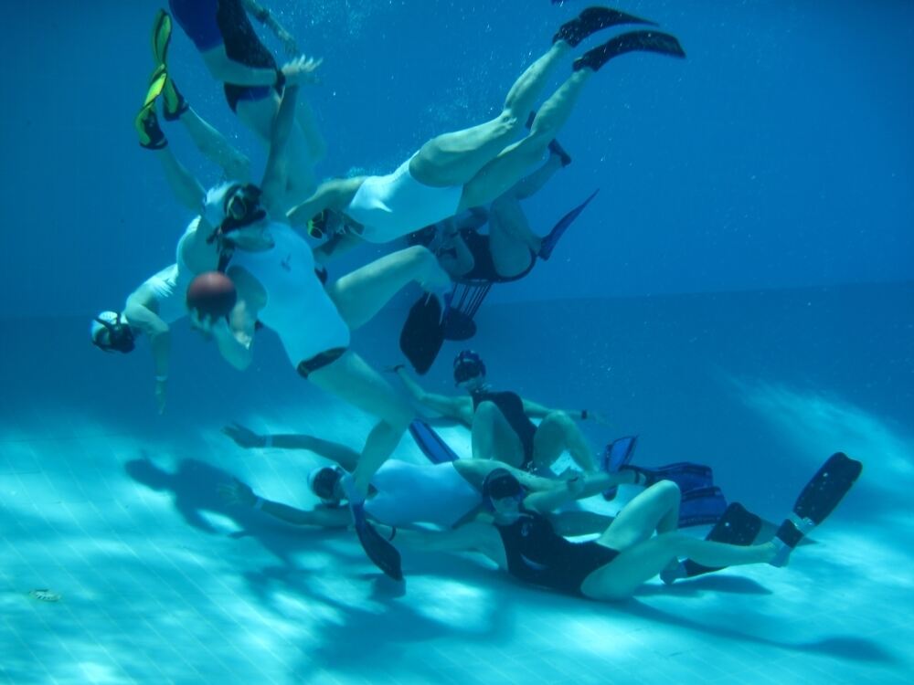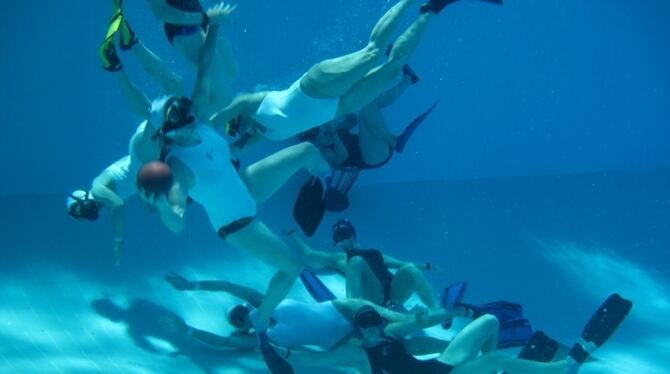 Beißen, schlagen und kratzen ist beim Unterwasserrugby verboten. Dennoch geht es zuweilen recht grob zu. FOTO: PR