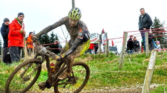 Von den schwierigen Bedingungen gezeichnet: Überraschungs-Sieger Rudi van Houts ließ die Schweizer Elite hinter sich.