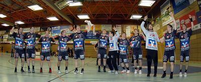 Der Jubel war groß nach dem Sieg in Langenau. Die Spieler des TV Neuhausen feiern die Regionalliga-Meisterschaft und den Aufstieg in die zweite Bundesliga.