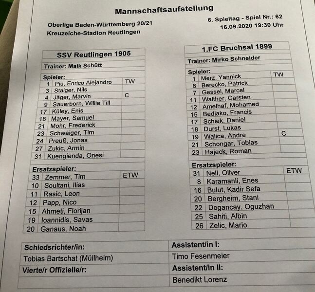 19.10 Uhr Herzlich willkommen zum Liveticker vom Heimspiel des SSV Reutlingen gegen den 1. FC Bruchsal. Mit vier Punkten aus fünf Oberligaspielen und dem damit verbundenen Tabellenplatz 17 steht der SSV heute gegen den punktgleichen Aufsteiger unter Zugzwang, um nicht noch weiter nach unten in der Tabelle zu rutschen. Um 19.30 Uhr ist Anpfiff im Kreuzeiche-Stadion.