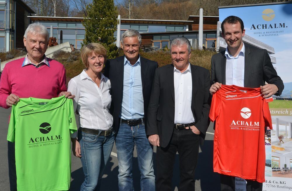 Rührten im Hotel Achalm die Werbetrommel für das Benefizspiel am 24. Mai: (von links) Mitorganisator Wilfried Gröbner, Christine Hipp vom Verein Weltenkinder, Ex-Trainer Armin Veh, SSV-Vorstandsmitglied Karl-Heinz Lang und Organisator Denis Lapaczinski. FOTO: NIETHAMMER