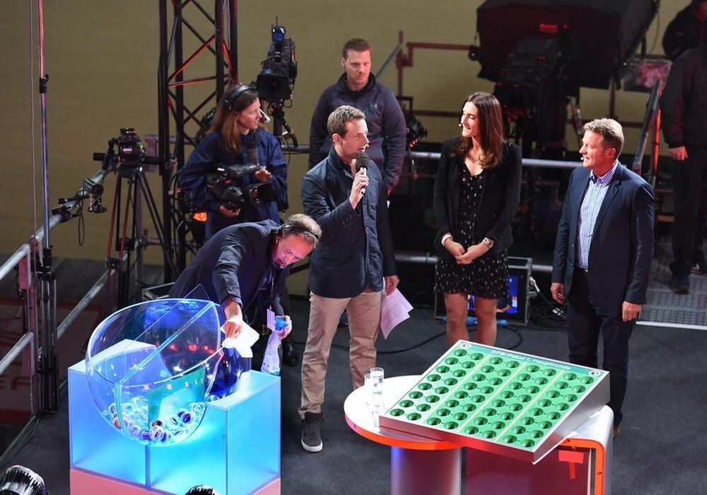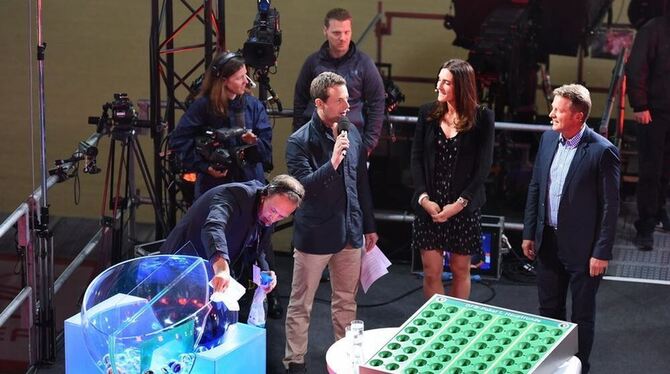 Die Spannung steigt: Moderator Alexander Bommes, Andrea Petkovic und Karlheinz Förster kurz vor Sendebeginn.