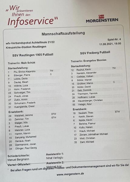 18:36 Uhr Die Rollen sind zwar klar verteilt, trotzdem ist der SSV heute Abend absolut nicht chancenlos. Zwar verloren die Reutlinger zum Oberliga-Auftakt 0:2 beim FC Nöttingen. Aber auch der Start der Freiberger in die Pflichtspielrunde verlief holprig. In der zweiten Pokalrunde gab’s gegen die ebenfalls in der Oberliga beheimatete SU Neckarsulm einen Sieg nach Elfmeterschießen und in der dritten Runde wurde Landesligist FV Löchgau mit 2:1 bezwungen. Zum Punktspielauftakt sprang beim SV Oberachern nur ein 1:1-Unentschieden heraus. Wenn die Reutlinger an die Leistung als dem Spiel gegen Balingen anknüpfen können, gibt's heute Abend einen spannenden Pokal-Fight an der Kreuzeiche.