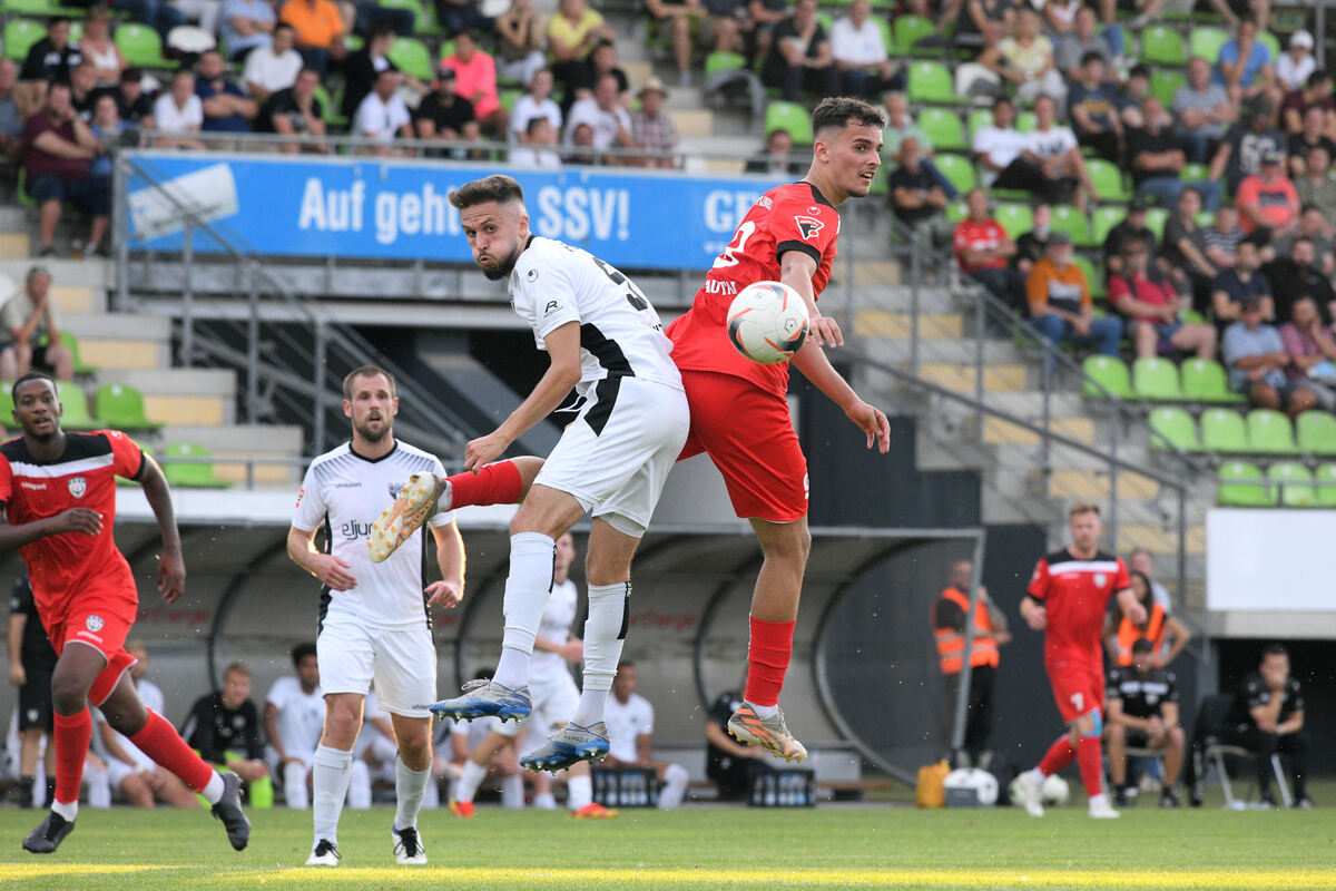 22. Minute Der SSV antwortet prompt mit einem Angriff. Kuengienda schickt Ganaus auf die Reise, der aber nach außen abgedrängt wird und dann überhastet abschließt.