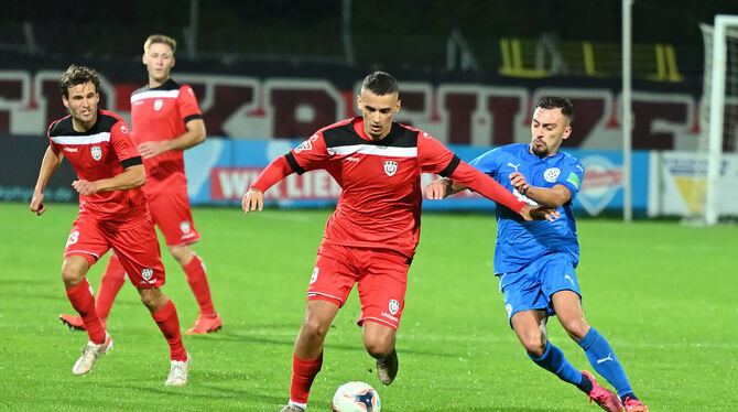 43. Minute Gelbe Karte für den Reutlinger Mohr, der seinen Ellenbogen im Zweikampf zu sehr eingesetzt hat.