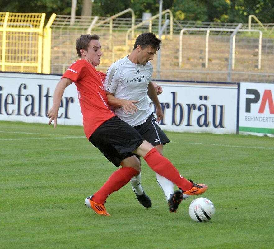 Die Reutlinger Stürmer - im Bild links Janik Michel im Zweikampf mit dem Bonlandener Andrej Greif - hatten teilweise fast im Minutentakt Chancen.
