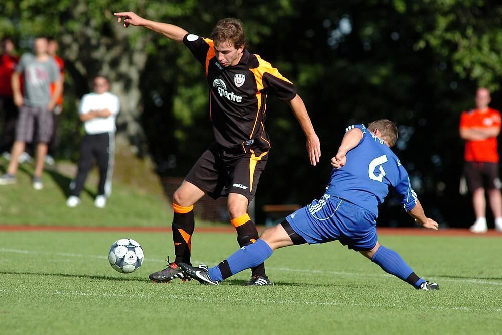 SSV-Torschütze Hakan Cakmak (links) im Duell mit Simon Schau. FOTO: BAUR