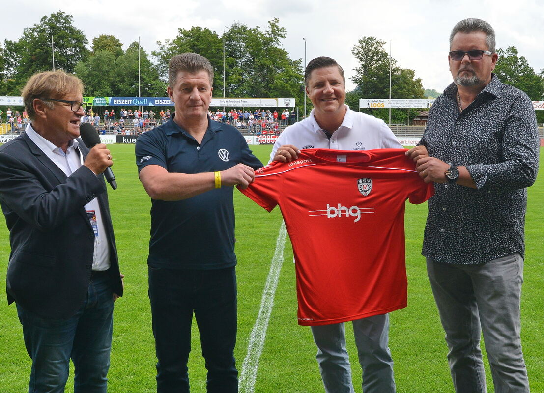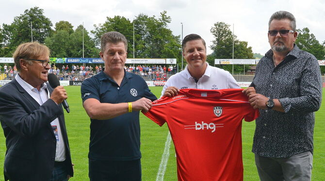 SSV-Marketing-Chef Norbert Brendle (links) präsentiert den neuen Trikotsponsor bhg.