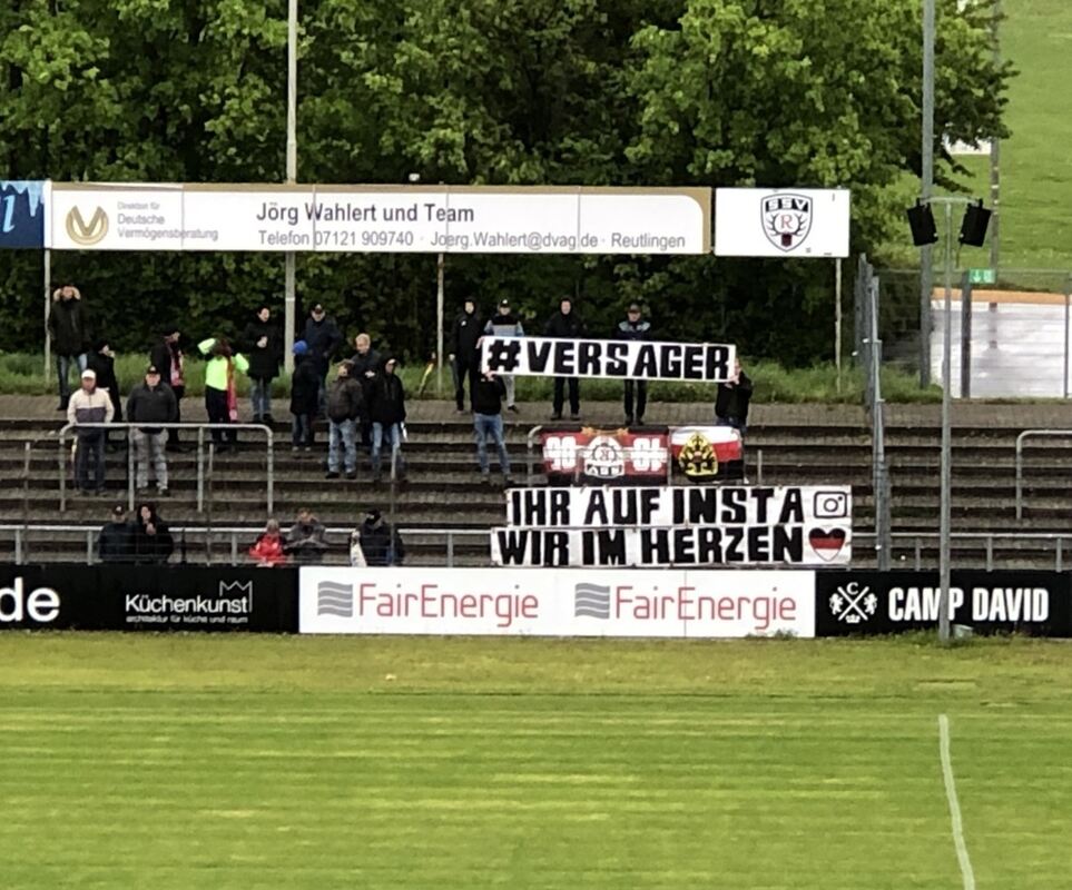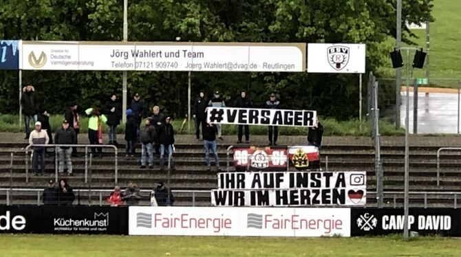 REUTLINGEN. 89 Minuten lang war es war gespenstisch still im Reutlinger Stadion an der Kreuzeiche, was nicht nur an der Minuskulisse der Saison mit 672 Zuschauern lag. Während die Oberliga-Fußballer des SSV Reutlingen gegen Normannia Gmünd bemüht waren, die Sieglos-Serie zu beenden, bekamen sie dafür von den Zuschauerrängen keine Unterstützung. Die Fangruppe Szene E, die sonst bei den Heimspielen für Stimmung sorgt, blieb stumm: Keine Anfeuerrungsrufe, Fangesänge oder aufmunternder Beifall. Auch die Fahnen haben die Fans eingepackt gelassen. Stattdessen haben sie ein Banner aufgehängt mit der deutlichen Botschaft: »Schämt euch! ALLE!«