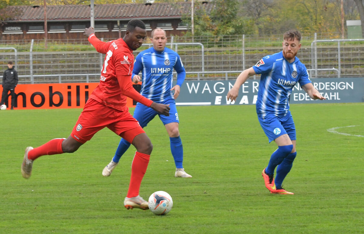 Zeigt eine starke Leistung und erzielt das zweite Tor für den SSV: Onesi Kuengienda (links). Fotos: Meyer