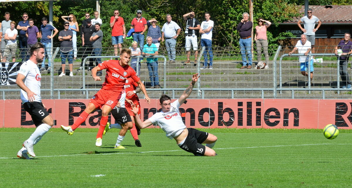 In der ersten Hälfte sahen die Zuschauer eine phasenweise fein kombinierende Villinger Mannschaft, die nicht umsonst in der vergangenen Saison Zweiter wurde. Tadic hatte mit einem Schuss an den Außenpfosten Pech, Benedikt Haibt schoss knapp am Gehäuse vorbei und Stjepan Geng scheiterte mit einem Freistoß an Torhüter Milan Jurkovic. Beim SSV gab es im ersten Durchgang einige Missverständnisse und unsaubere Zuspiele. Zudem landeten viele abprallende Bälle beim Gegner, weil die Staffellung nicht optimal war. Es war dennoch bemerkenswert, wie sich die Mannen um Kapitän Pierre Eiberger Stück für Stück ins Spiel hineinkämpften.