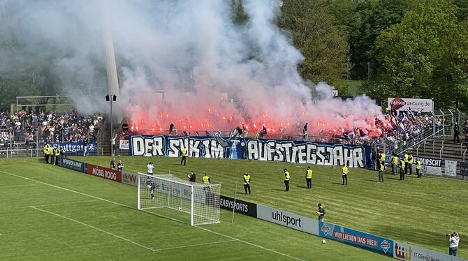 »Die Anreise verlief problemlos«, sagt Pressesprecherin Simone Mayer. Rund 180 SSV-Fans haben sich am Mittag vom Albtorplatz aus zum Stadion aufgemacht. Kickers-Anhänger sind am Bahnhof in Busse eingestiegen. »Als sie ausgestiegen sind, kamen etwa 30 bis 40 Anhänger des SSV und haben Pyrotechnik gezündet.« Die Polizei sei eingeschritten und habe sieben Personen festnehmen können. Verletzt wurde niemand.