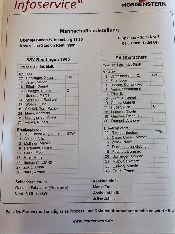 13:45 Uhr: Herzlich willkommen zum ersten Liveticker in der Oberliga-Saison des SSV Reutlingen. Wir sind wieder bei jedem Heimspiel für euch dabei. Zu Gast an der Kreuzeiche ist der SV Oberachern, der in der abgelaufenen Saison auf Platz 14 gelandet ist. Der SSV wurde Neunter. Zu Hause hat der SSV 5:1 gegen Oberachern gewonnen, auswärts 0:4 verloren. Auf dem Papier ist der SSV Favorit. Aber die Reutlinger gehen mit einer völlig neuen Mannschaft an den Start. Es gab 11 Zu- und 13 Abgänge.