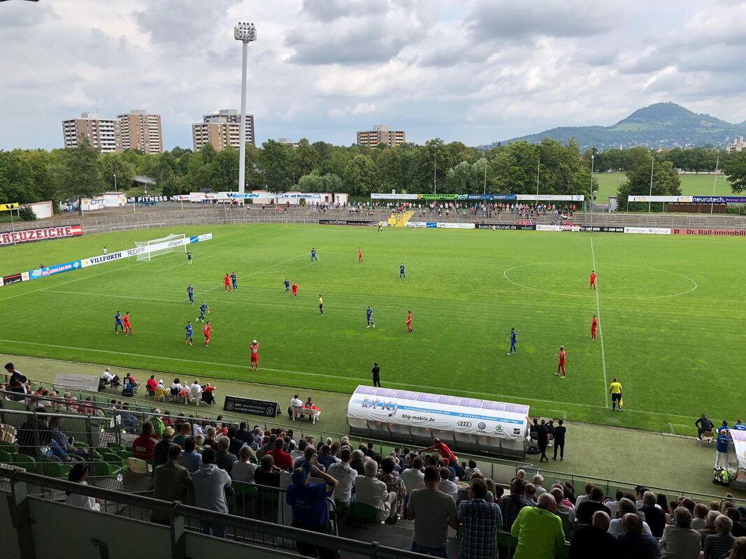 17. Minute: Erstes Zwischenfazit: Es ist ein Spiel auf Augenhöhe. Oberachern ist offensiv einen Tick zielstrebiger.
