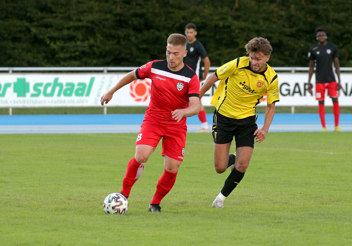 Der zweifache Torschütze des SSV, Samuel Mayer (links), im Zweikampf mit Daniel Breuninger.