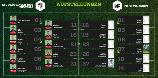Aufstellungen Wie angekündigt stellt Trainer Maik Stingel personell ordentlich um. Vladan Djermanovic ersetzt im Sturm Roman Kasiar. Auch Onesi Kuengienda ist fit und zurück in der Startformation. Wie erwartet beginnt auch Luca Plattenhardt nach seiner Sperre. Eine defensive Ausrichtung sieht anders aus. Reutlingen will wohl nach vorne spielen.