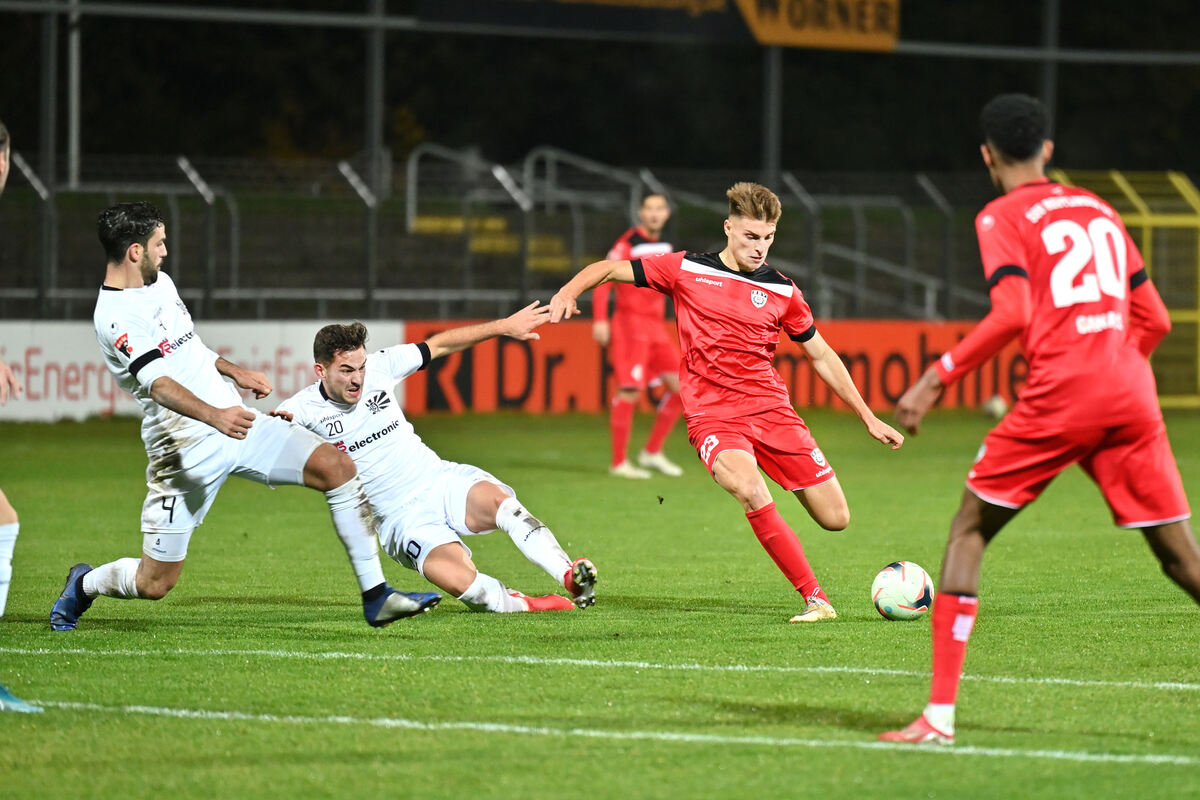 68. Minute Der eingewechselte Heiligenstein ist aus kurzer Distanz zur Stelle. Zuvor hat Schumann den Ball auf der linken Seite im Aufbauspiel leichtfertig dem Gegner in die Füße gespielt.