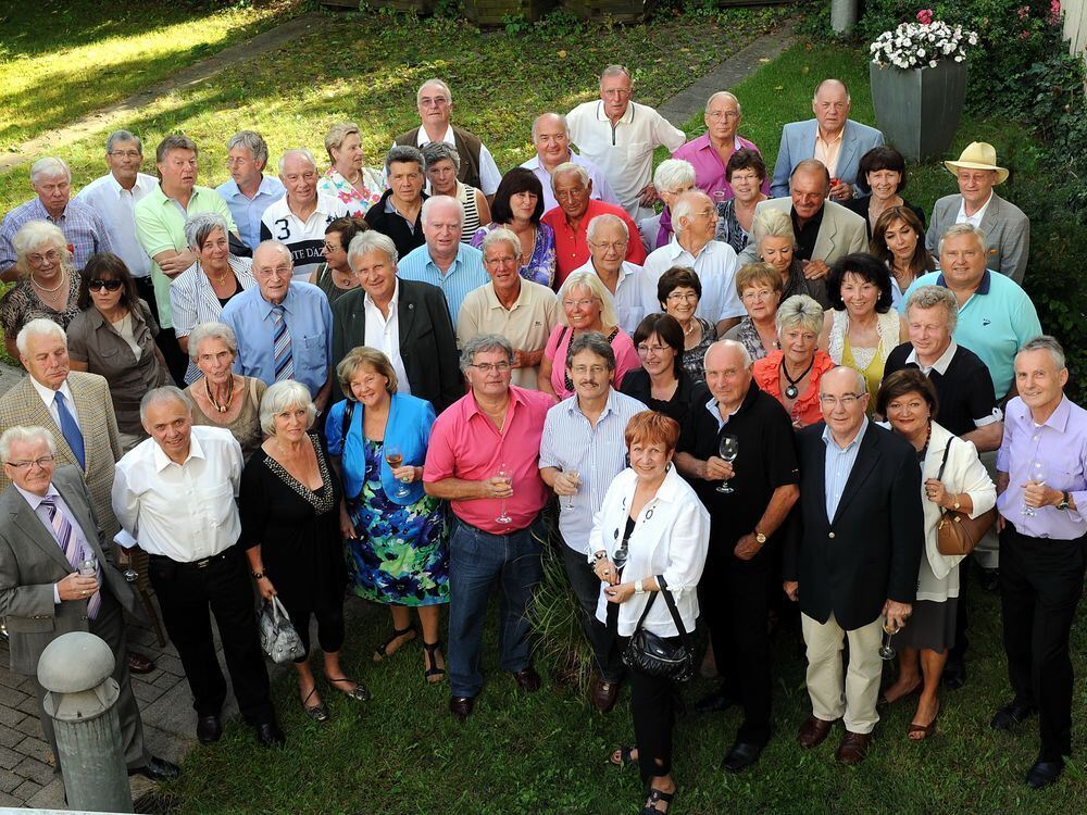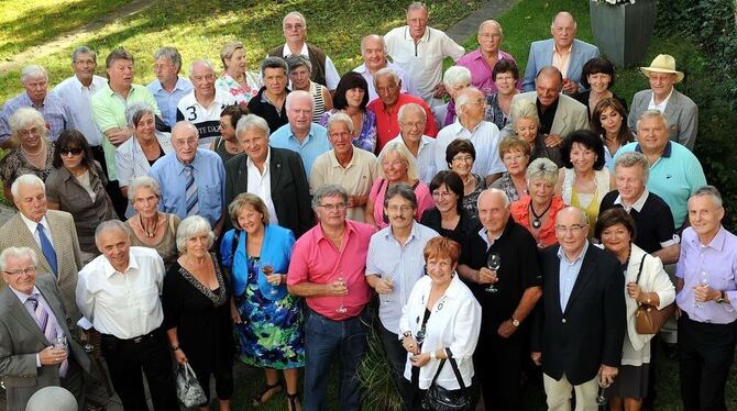 Gruppenfoto mit Damen: Ehemalige Vertragsspieler des SSV Reutlingen tauschten im City Hotel Fortuna Erinnerungen aus.