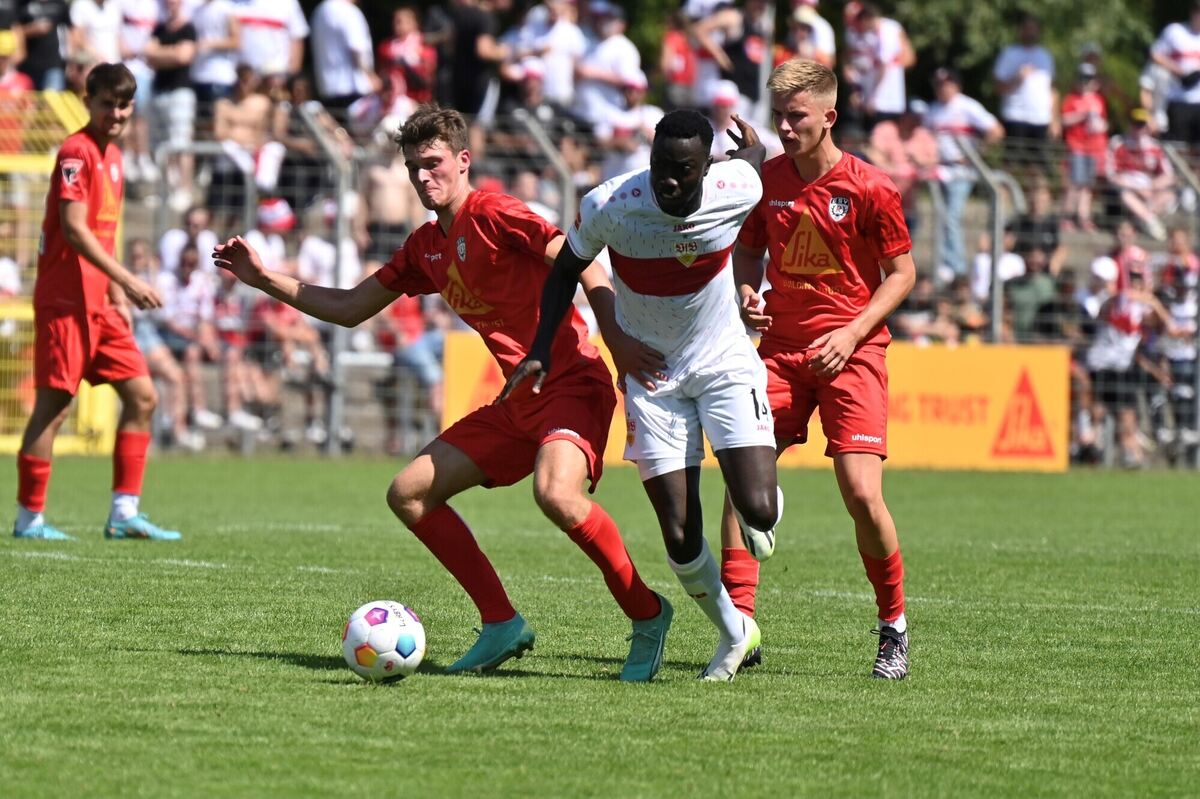 25. Minute Krajonivic sorgt für ein Raunen im Kreuzeiche-Stadion. Der Youngster lässt im Mittelfeld gleich zwei Stuttgarter alt aussehen, wird dann aber doch gestoppt.
