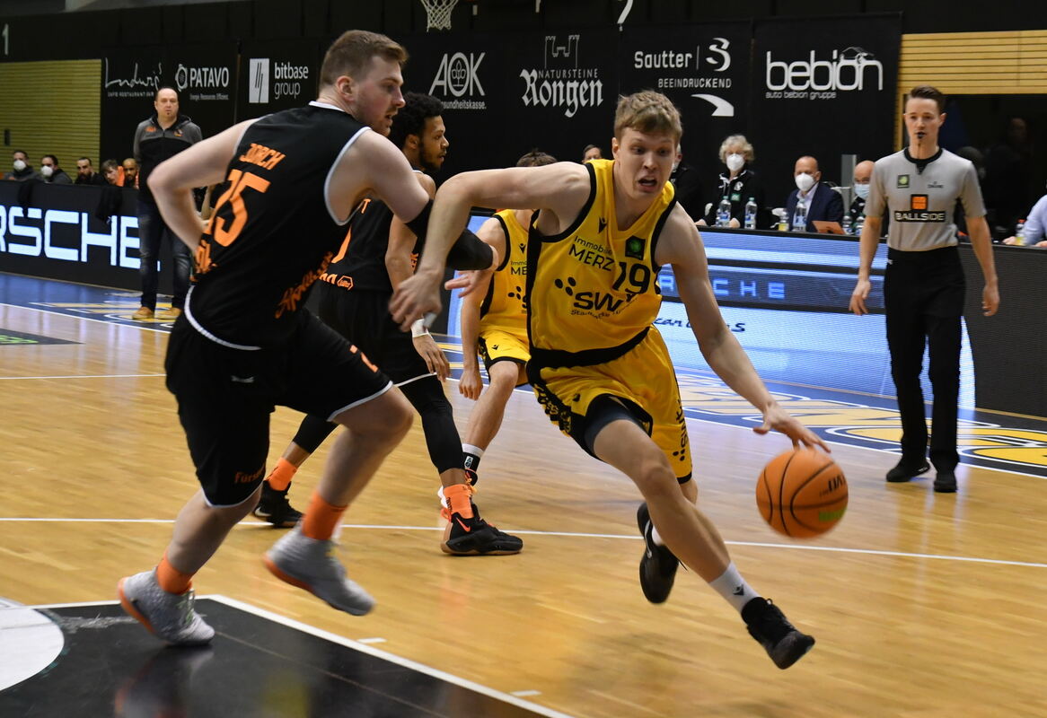 ROTTENBURG. Nur vier Zähler erzielten die Zweitliga-Basketballer von Trainer Danny Jansson im Schlussabschnitt und blieben in den letzten 8:28 Minuten ohne Punkt. Vor allem die punktemäßigen Nullnummern von Timo Lanmüller und Troy Simons taten den Hausherren dabei weh. Bester Tübinger Punktesammler war wieder einmal Elias Valtonen mit 21 Zählern, wobei auch von ihm in der zweiten Halbzeit nur noch sechs dazukamen. Auf Schwenninger Seite erzielte Courtney Stockard mit 16 Punkten den Löwen-Anteil. (GEA)