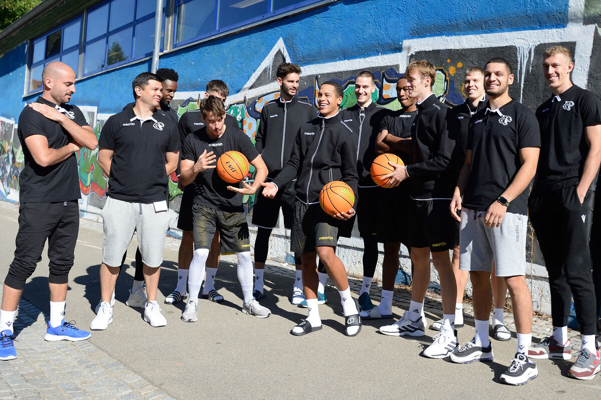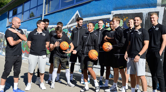 Gruppenbild der Tigers Tübingen vor der Trainingshalle in Tübingen. FOTO: PIETH