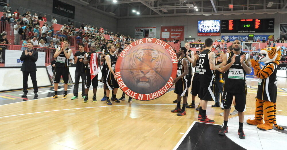 Die Tübinger Bundesliga-Basketballer feierten trotz der Niederlage gegen Quakenbrück einen versöhnlichen Abschluss mit ihren Fans.
