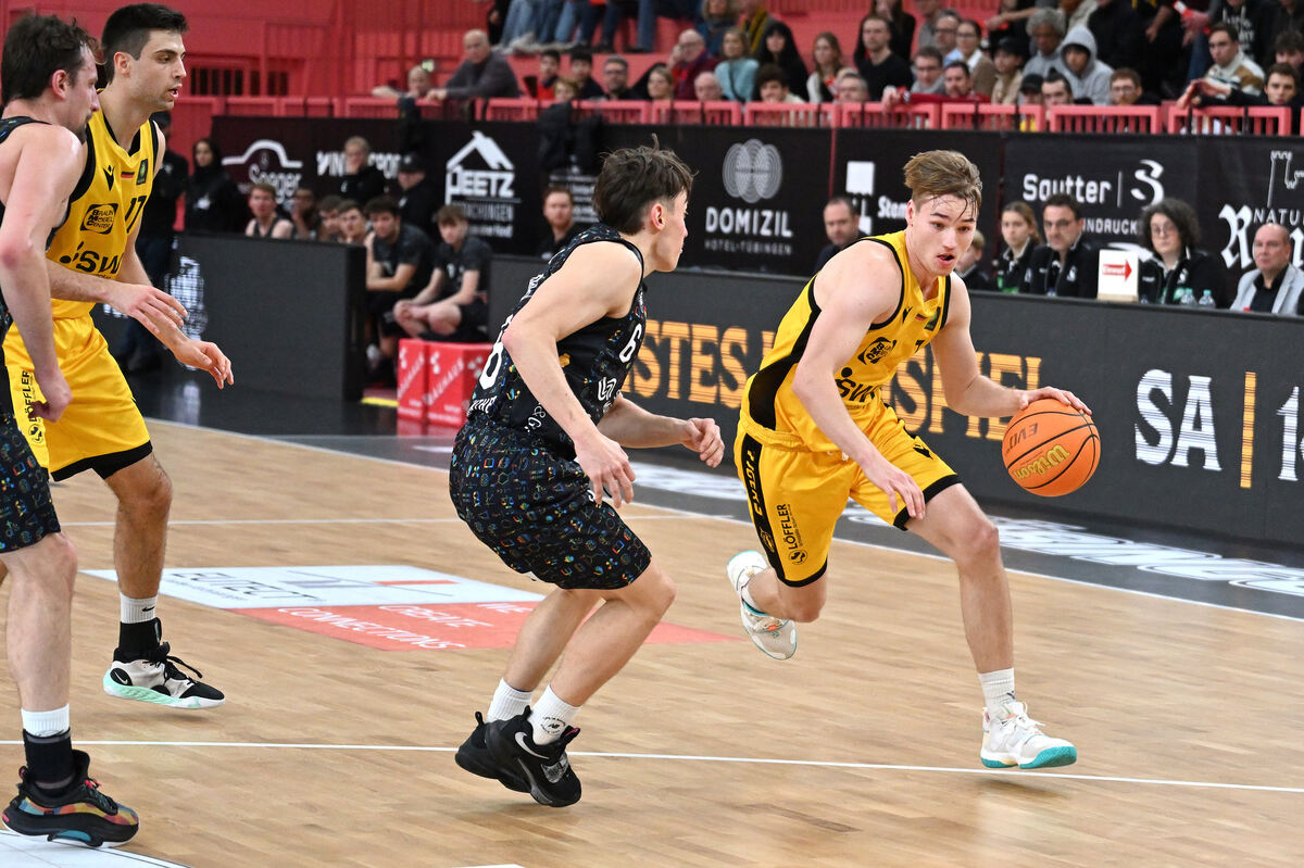 Die Tübinger Timo Lanmüller (rechts) und Mateo Seric (Zweiter von links) sorgen in der Schlussphase für wichtige Punkte.
