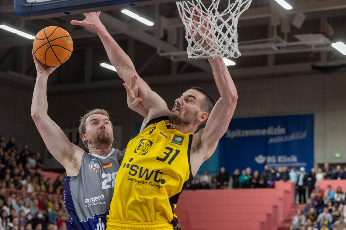 101 gegen 105 Kilogramm : Tübingens Center Daniel Keppeler (rechts) gegen Paderborns Lars Lagerpusch. FOTO: DUDDEK/EIBNER
