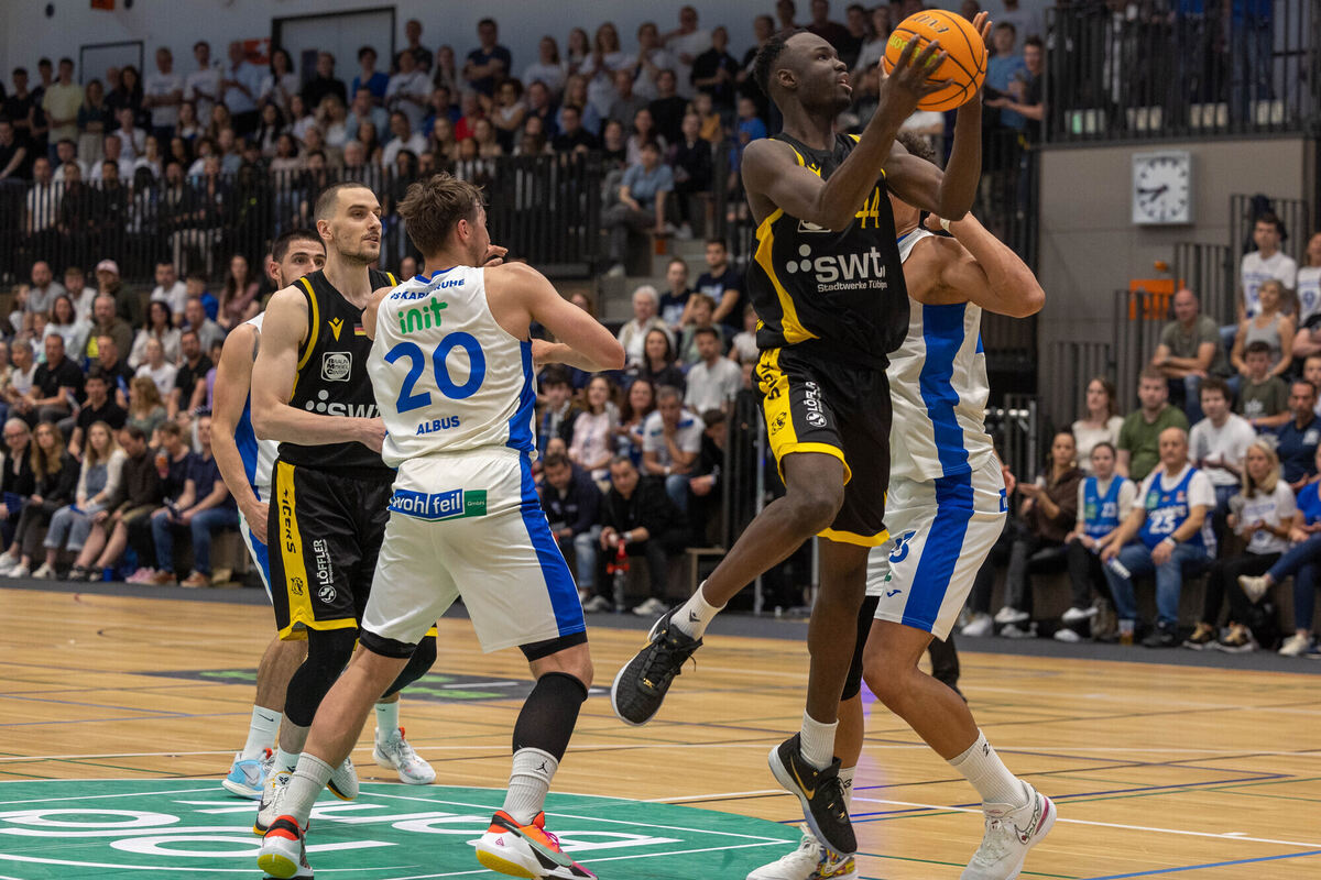 Bakary Dibba (mit Ball) wird ausgeliehen, hat aber noch bis 2025 einen Vertrag bei den Tigers Tübingen.