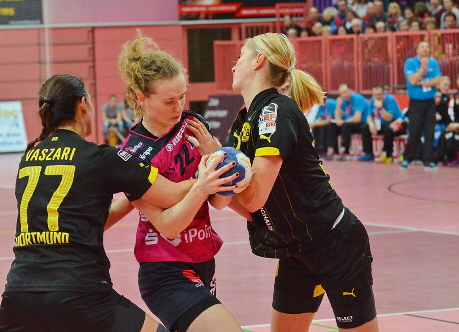 Kein Durchkommen für Maren Weigel: Hier wird die Metzingerin von Virag Vaszari und Nadja Nadgornaja gestoppt.