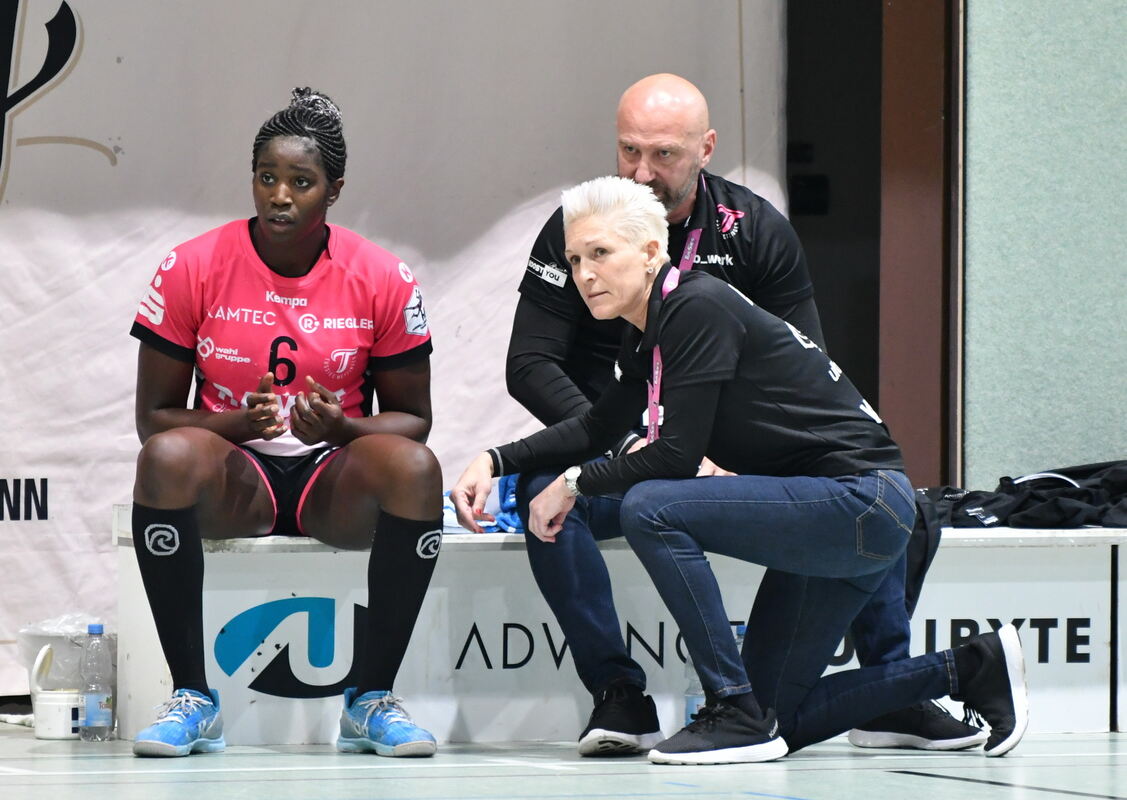 Das letzte Punktspiel der TuS Metzingen – im Bild Trainerin Edina Rott und Geschäftsführer Ferenc Rott – liegt schon fast drei Wochen zurück . FOTO: MEYER