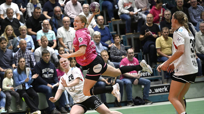 Verena Oßwald (beim Wurf) trumpft mit sieben Treffern in 40 Minuten auf.