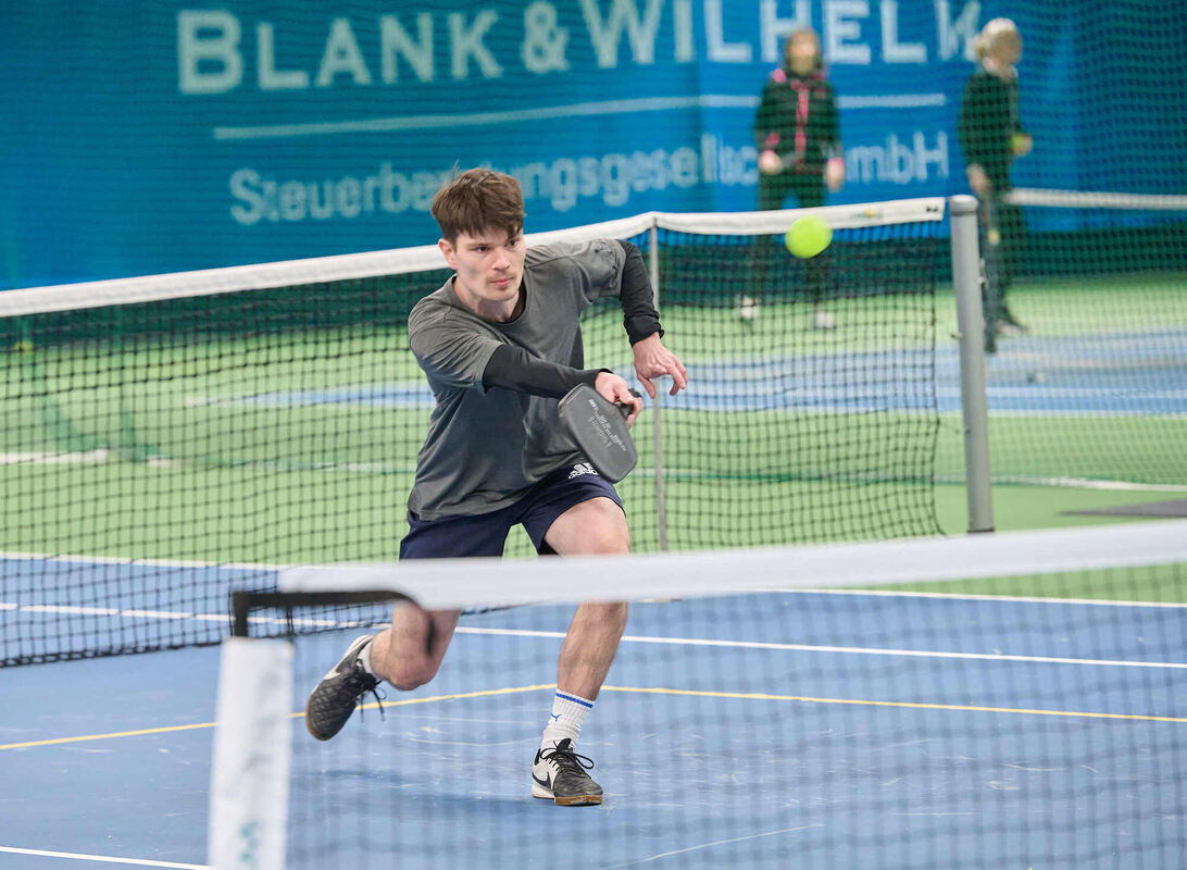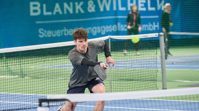 Mit voller Konzentration am Werk: GEA-Sportredakteur Kilian Jährig versucht sich im Trendsport Pickleball.