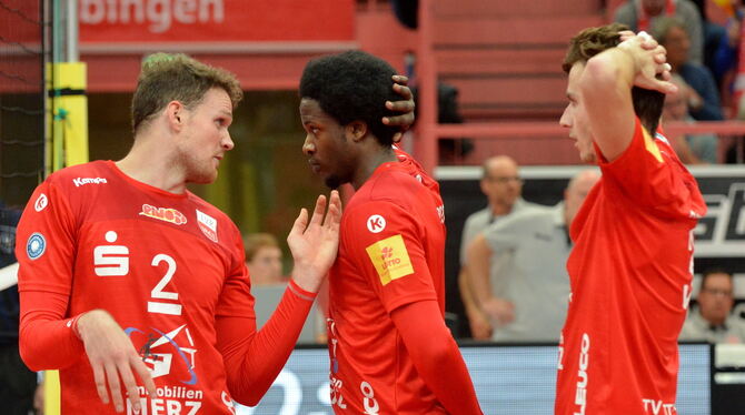 Traurig über den Rückzug des TV Rottenburg (von links): Kapitän Mitchell Penning, Jared Jarvis und Leon Dervisaj. FOTO: NIETHAMMER