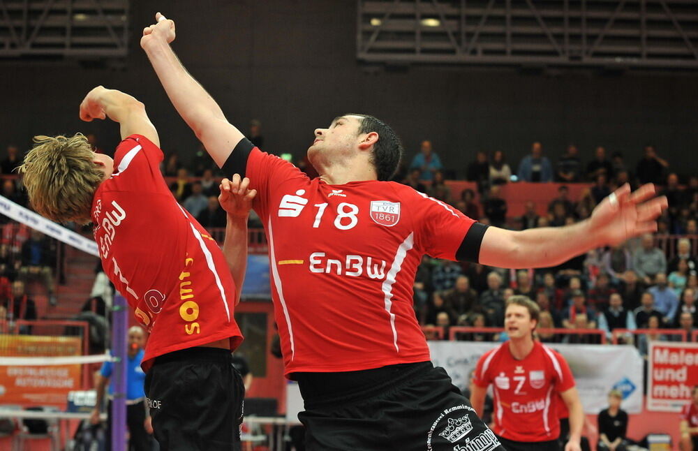 Einsatz und Leidenschaft sind alles: Rottenburgs Mittelblocker Thomas Ranner (rechts) geht mit gutem Beispiel voran.