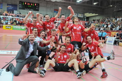 TÜBINGEN. Mit dem wohl besten Spiel in seiner Zugehörigkeit zur Volleyball-Bundesliga trumpfte der EnBW TV Rottenburg großartig auf und fegte Netzhoppers Königs Wusterhausen vom Parkett der Tübinger Paul-Horn-Arena. Durch das sensationelle 3:0 (25:19, 25:16, 25:17) vor 2400 Zuschauern, die den TVR minutenlang mit Standing Ovations feierten, festigten die Rottenburger ihren dritten Tabellenplatz.