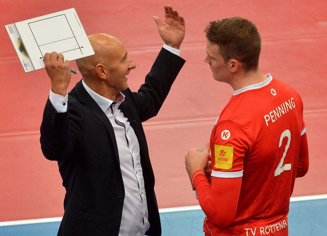 Hans Peter Müller-Angstenberger mit Mittelblocker Mitchell Penning. FOTO: NIETHAMMER
