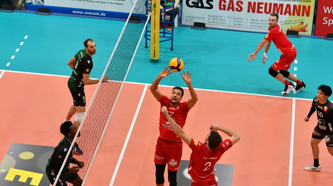 KÖNIGS WUSTERHAUSEN. Die vergangenen Duelle mit den Netzhoppers waren stets hart umkämpf. So auch die jüngste Duell zweier direkter Konkurrenten um die Play-off-Plätze, das zunächst ausgeglichen begann. Beide Mannschaften spielten ohne viele Eigenfehler. Rottenburgs Trainer Christophe Achten musste beim 18:16 erstmals korrigieren und brachte Leon Dervisaj im Zuspiel sowie Karl Apfelbach auf Diagonal. KW hatte die Führungsarbeit übernommen und legte im Spielstand vor. Das änderte sich erst kurz vor Schluss, als Netzhoppers-Außen Dirk Westphal in der Annahme zweimal wackelte. Der eingewechselte Karl Apfelbach nutzte dies und sorgte nach dem 23:23 mit zwei Assen recht kaltschnäuzig für die TVR-Führung.