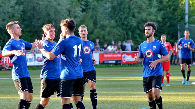 REUTLINGEN. Lukas Linder brachte den VfL per Volleyschuss früh in Führung. Nach dem Seitenwechsel erkämpfte SG-Stürmer Christan Locher einen Elfmeter, den er zum 1:1 verwandelte. Bis Minute 72 blieb das Spiel offen, ehe die Pfullinger das Tempo anzogen. Andreas Maier brachte den VfL wieder in Führung (2:1). In der Schlussviertelstunde machte Pfullingen den Sack endgültig zu. Die eingewechselten Aleksandar Krsic (83. Minute) und Dominik Früh (84.) sorgten für das 3:1 und 4:1. (GEA)