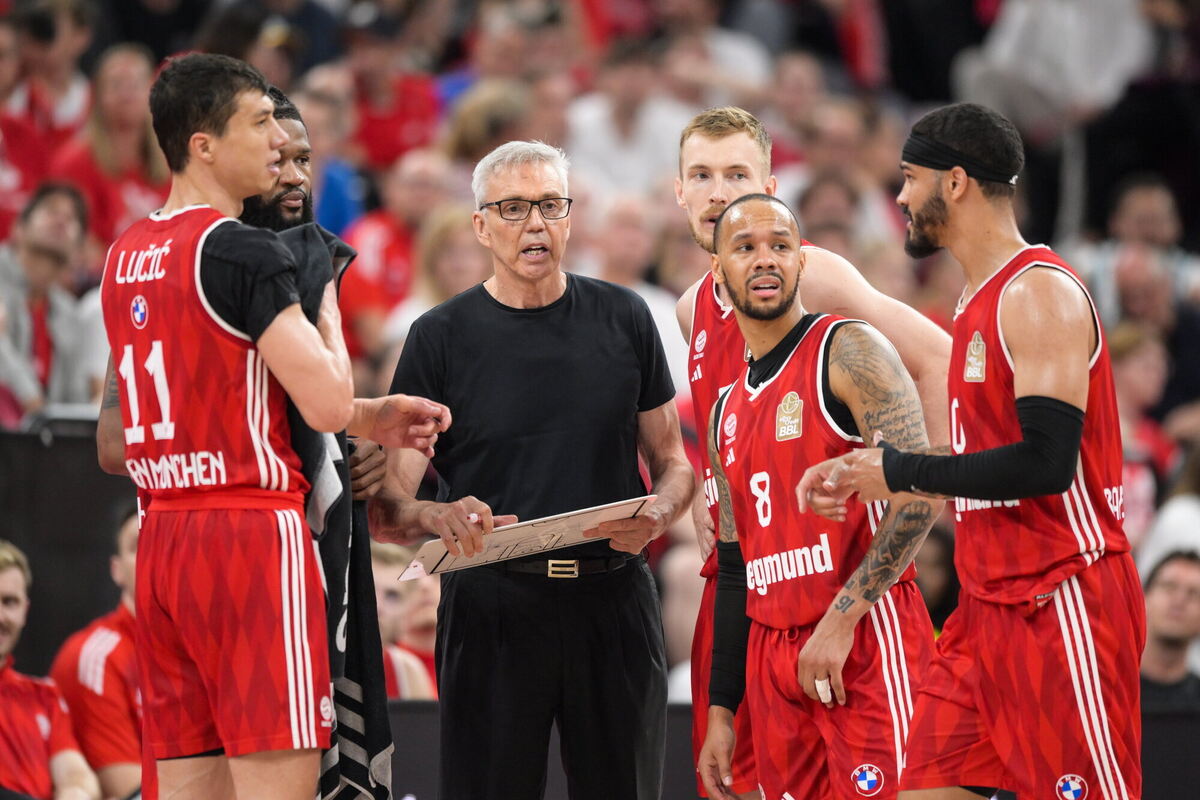 Der FC Bayern mit dem deutschen Weltmeister-Coach Gordon Herbert (Mitte) startet am Freitag in die neue Bundesliga-Saison. FOTO: FISCHER/WITTERS