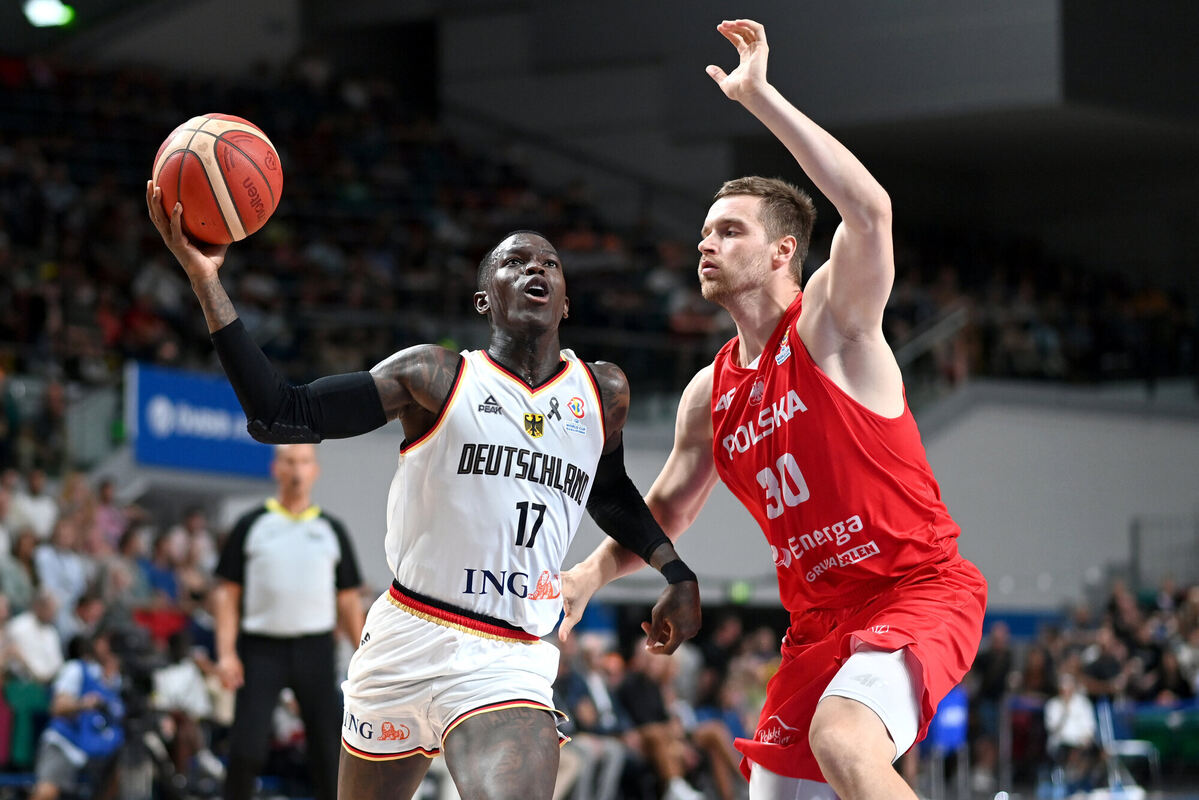 Mit 38 Punkten herausragender Akteur auf dem Parkett: Dennis Schröder. Rechts: Der Pole Jakub Garbacz. FOTO: DITTRICH/DPA