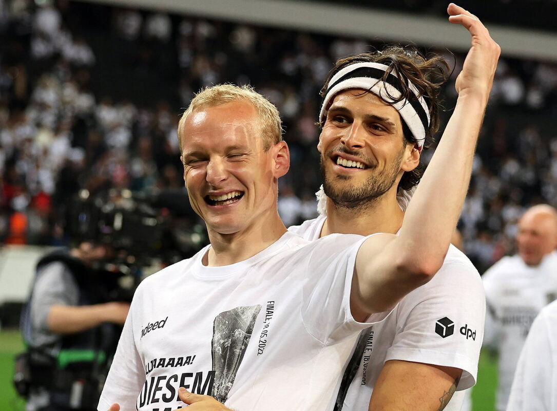 »Wir tragen den Adler in die Welt«, sagt Eintracht-Kapitän Sebastian Rode (links). Daneben Goncalo Paciencia.