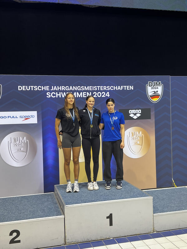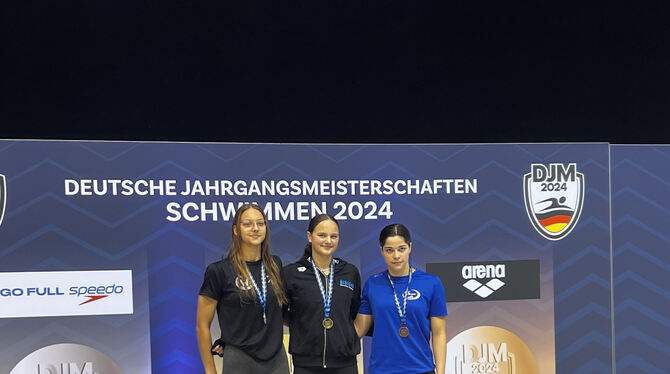 Svenja Götting (Mitte) freut sich über den 100- Meter-Freistil-Titel. FOTO: PRIVAT