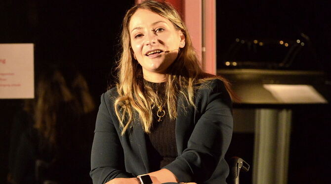 Bewegte das Publikum in Eningen mit ihrem Lebensmut: Kristina Vogel. FOTO: NIETHAMMER