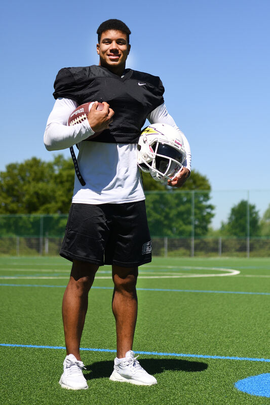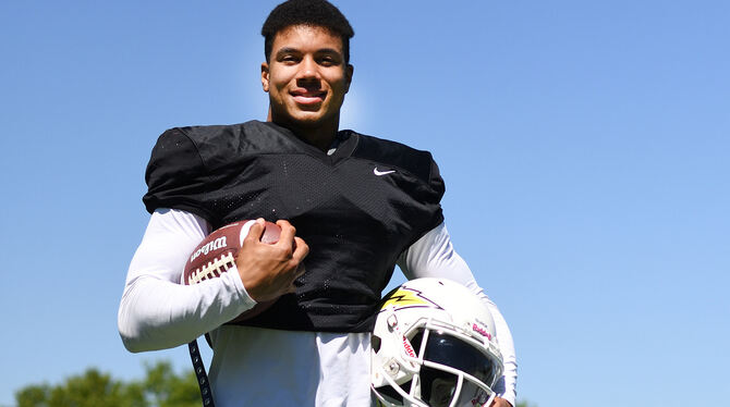 In voller Montur: Der 22-jährige Marcel Dabo in seinem Football-Outfit.